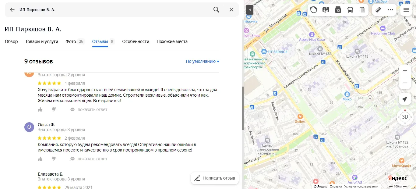Поэтому, мы будем рады получить от Вас честную обратную связь. Отзыв о работе с нами, Вы можете оставить на Яндекс картах, либо же написать нам на почту. Так-же, вы можете связаться с нашим директором, в любом удобном для Вас мессенджере. Мы ждём Ваших отзывов!